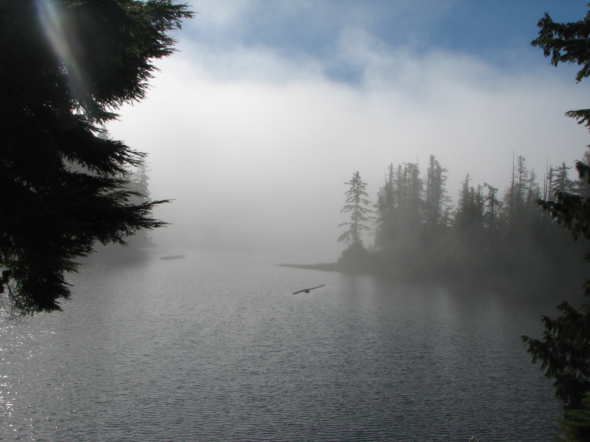 Fog settles on the cove when the air gets cooler than the water, which happens many times during the year.